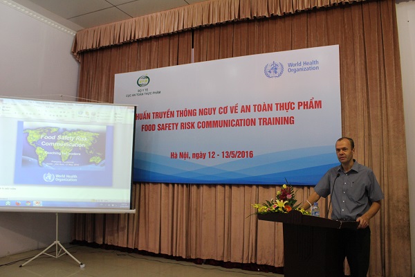 Phát biểu tại buổi tập huấn ông Peter Hoejskov, đại diện của WHO Khu vực tại Maninla, Philippine cho biết WHO quan tâm đặt biêt đến việc hợp tác liên ngành, liên quốc gia về ATTP. WHO đánh giá cao quá trình hợp tác của Bộ Y tế Việt Nam, trong đó có Cục ATTP với WHO. Truyền thông nguy cơ là một chương trình ưu tiên đặc biệt trong truyền thông bảo đảm ATTP. Buổi tập huấn này được tổ chức theo yêu cầu của Bộ Y tế và được xây dựng theo Sổ tay hướng dẫn truyền thông nguy cơ đối với ATTP của WHO. Hội nghị tập huấn này là một trong nhiều hoạt động phối hợp nhằm nâng cao năng lực, kỹ năng truyền thông ATTP của WHO tại Việt Nam.